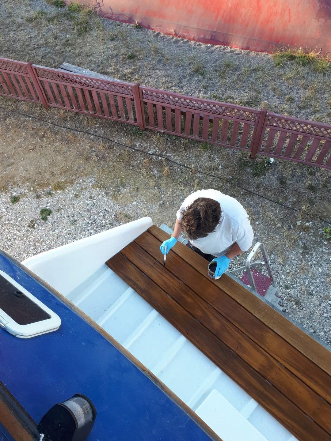 I efteråret 2017 begyndte vi arbejdet med at udbygge badeplatformen , da den eksisterende var meget smal og samtidig med dette projekt , satte vi hækpropel i . ( Vi havde tidligere fået lagt bovpropel i )
